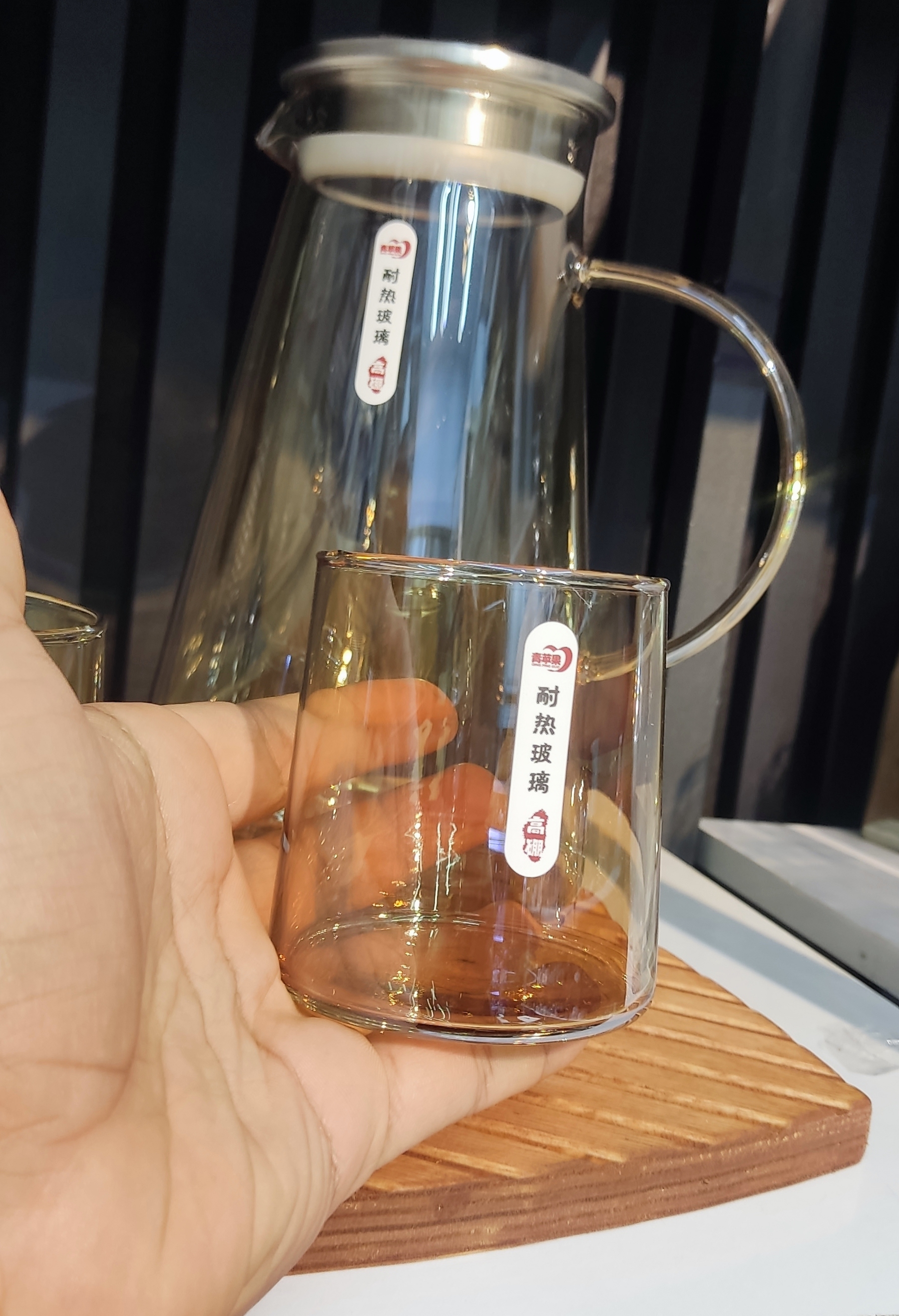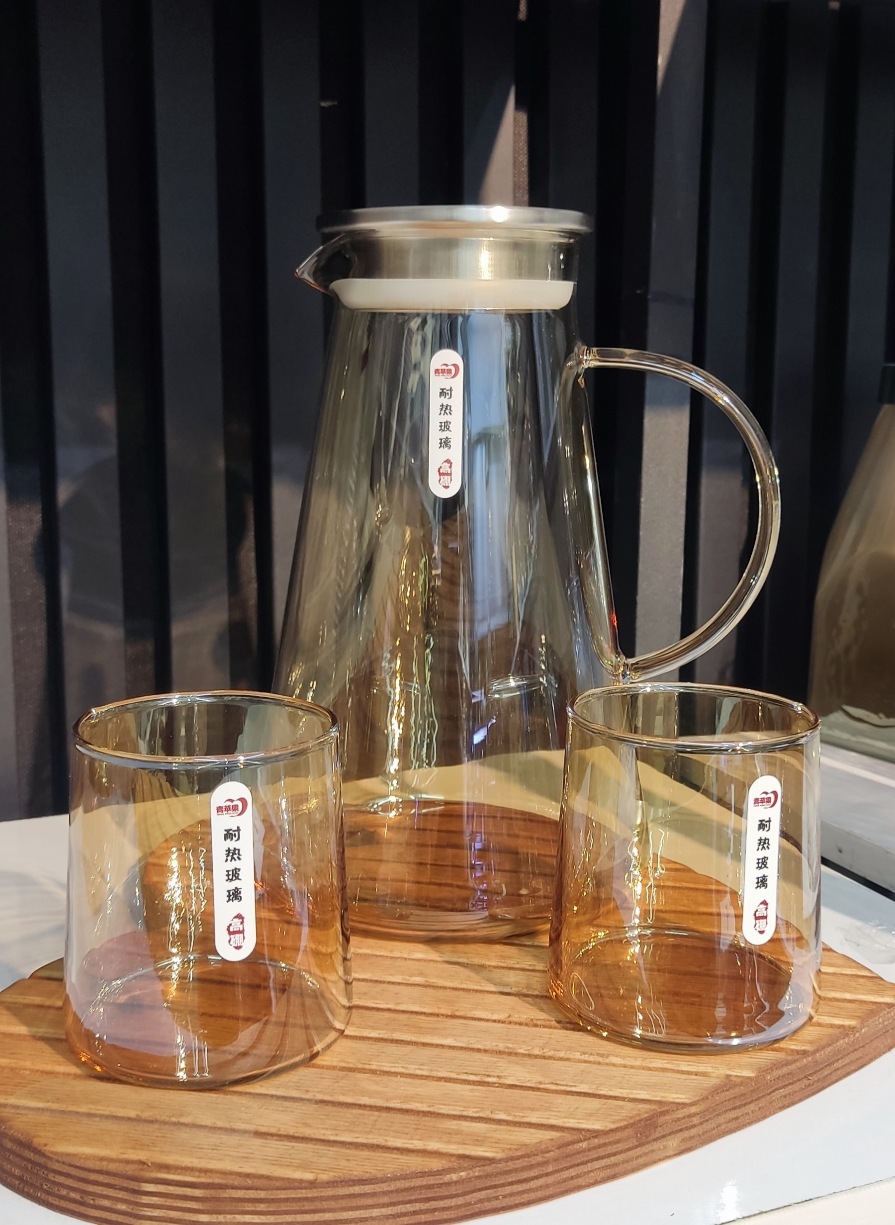 پارچ همراه ۶ لیوان پیرکس به زنگ عسلی بسیار شیک برند دلی گلس